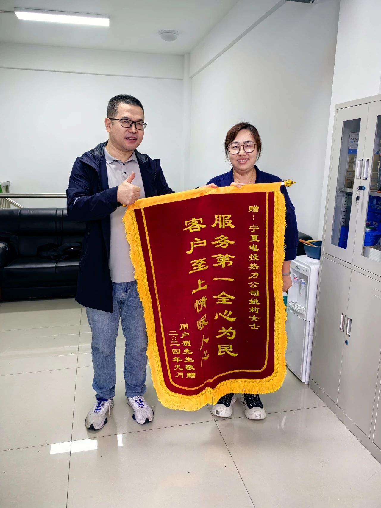 9月13日,學(xué)府中央熱用戶賀先生將一面印有“服務(wù)第一全心為民、客戶至上情暖人心”的錦旗,送到熱力公司運(yùn)行服務(wù)部業(yè)務(wù)四部業(yè)務(wù)經(jīng)理姚莉手中,以此表達(dá)姚莉妥善解決自己5年來(lái)因房屋產(chǎn)權(quán)買賣而導(dǎo)致的采暖費(fèi)糾紛的感謝。